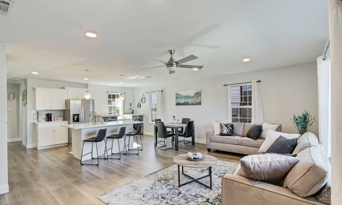 One of the most amazing features of our rental is the expansive backyard that's simply perfect for outdoor activities with friends and family. It's a great place to relax, unwind, and enjoy time together in a serene and pleasant setting.