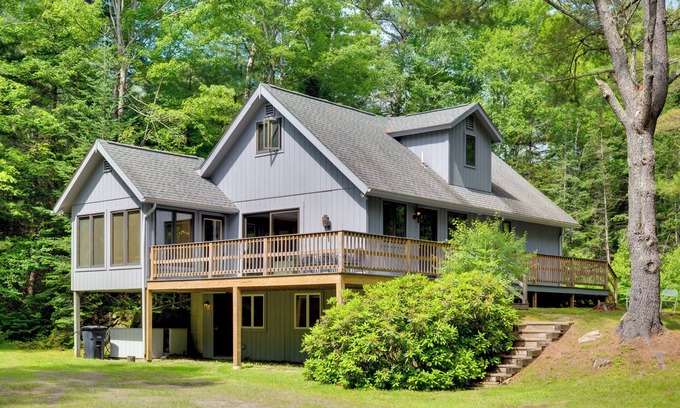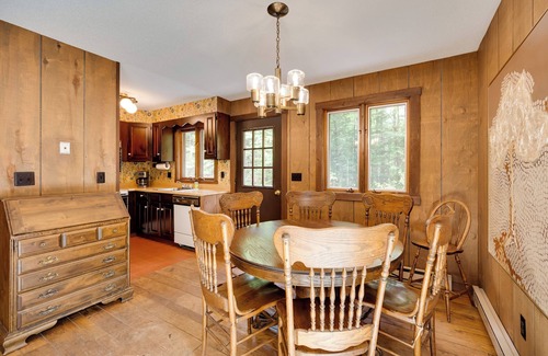 From scenic trails and powdery slopes to vibrant fall foliage, this Franconia vacation rental puts you at the heart of New Hampshire's great outdoors. The 5-bedroom, 3-bath house makes it easy to recharge after exploring the White Mountains — unwind in the retro cabin-inspired interior or head outside to watch the sunset on the deck. Come enjoy fresh air in the company of family and friends at this alpine hideaway!