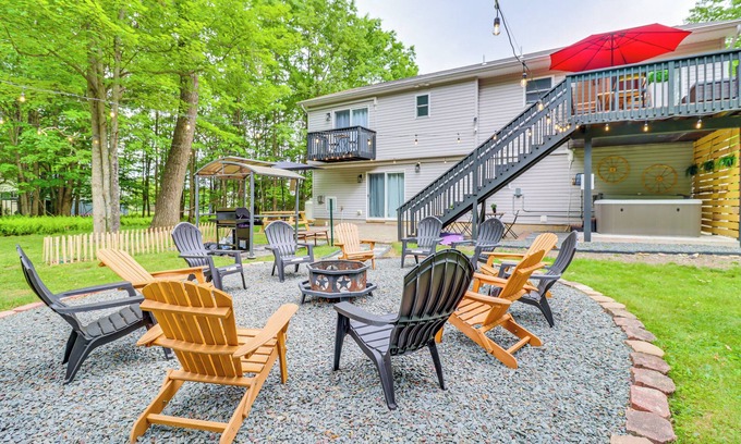 5 Mi to Lake Naomi: Home w/Hot Tub & Fire Pit is located in Long Pond. 5 Mi to Lake Naomi: Home w/Hot Tub & Fire Pit provides accommodation, featuring Bedding/Linens, Parking, Pool, among other amenities. This House features Bedding/Linens, Parking, Pool, to make your stay a comfortable one.