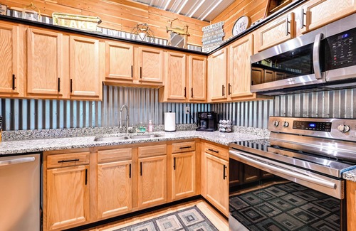 This 2-bedroom, 1-bath vacation rental — nestled in the trees just 5 miles from Wax Marina at Nolin Lake — has everything your family needs for an awesome off-the-grid adventure! After a day on the water, shoot pool and sip cocktails in the game room, then dine al fresco on the furnished front porch. Later, go for a soak in the private hot tub and cap off the night around the fire pit. Clarkson is just a click away!