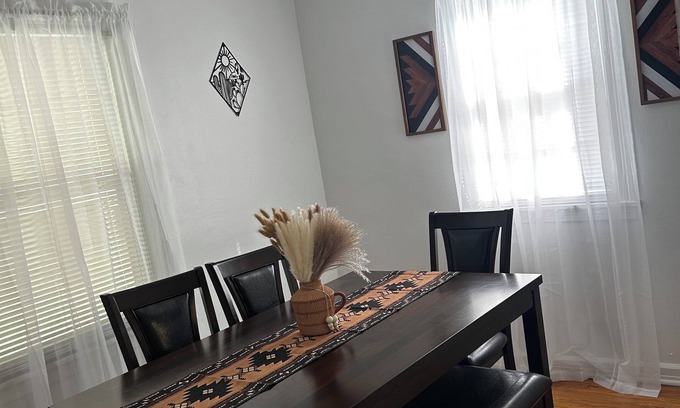 Discover the beauty of Wilmington from this centrally located house. Walking distance to the Park, Roosters, Bob Evans and other local eateries. this 3-bedroom house feature 2 queen beds and 2 full beds, perfect for a comfortable night's sleep. With amenities like a washing machine dryer , iron, heating, AC, and WiFi, guests can feel right at home. It has 1 full bathroom and 2 1/2 baths and they are equipped with a hair dryer for added convenience. It also has a basement with tv room. We're happy to assist with any questions while you stay at our lovely house.