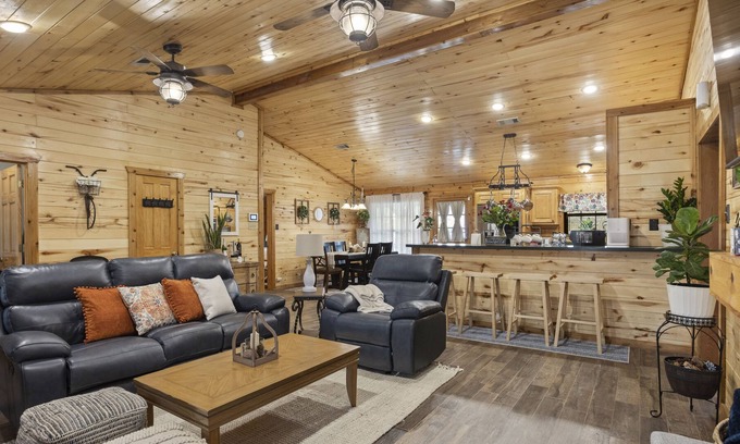 Retreating to a log cabin on 5 acres surrounded by green trees and vast lands is the getaway you didn’t know you needed. The idyllic landscape and natural surroundings will take your breath away. It's the perfect place to gather and bond with family and friends or your significant other. You'll enjoy country living while still having big city convenience of cafes, restaurants, shopping, and grocery stores just a few minutes away.