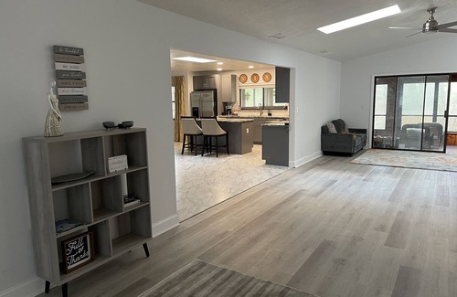Remodeled just a couple of years ago. It has been furnished with high quality mattresses, bedding and linens to make your stay comfortable. House sits on 4 quiet acres in an Equestrian community. Home has a well stocked kitchen with new tile floors & granite counters.