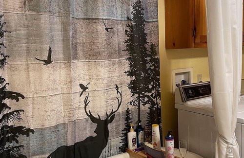The upstairs/downstairs bedrooms feature a king and queen bed respectively, ensuring a comfortable night's sleep. Amenities include WiFi, Satellite TVs, Outdoor Firepit, 3 Expansive Decks, Outdoor Grill, Picnic Table, Dishwasher, Stove, Microwave, Coffee Pot, Fully Stocked Kitchen, Porch Swing, Washer & Dryer, Heating & AC. The upstairs bathroom comes equipped with a bathtub, vanity, hair dryer & towels. The downstairs bathroom also includes a shower, small vanity, towels & hair dryer. You'll have everything you need for a delightful stay!
