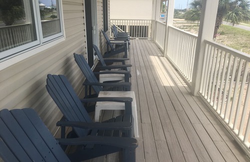 Welcome to our home! Bikini Bottom offers guests a bright, inviting & beachy décor with a tropical landscape. Enjoy your favorite cup of Java from the Keurig or a cold beverage while relaxing on the covered Gulf-side deck or take it down to the outdoor picnic table/grill area and private pool. There are hardwood floors throughout and a spacious living/dining room area. For your indoor entertainment, we have board games in the living room trunk and there are multiple TVs/DVDs as well as free wireless internet access. The large upstairs master suite features a private deck facing the Gulf and also a jetted tub with a separate walk-in shower. The downstairs bedrooms feature a Queen and single bunk in one room for kids, and a King in the other bedroom with a private access to the deck and downstairs bathroom. There is a Queen Sleeper Sofa in the living room for over-flow guests. Getting to the beach is quick and simple. Just cross the street and take the bike path to the 8th street beach access boardwalk in less than 5 minutes! In about 12 minutes you can get to the Bay side waterline going the opposite direction at the north end of 11th St.