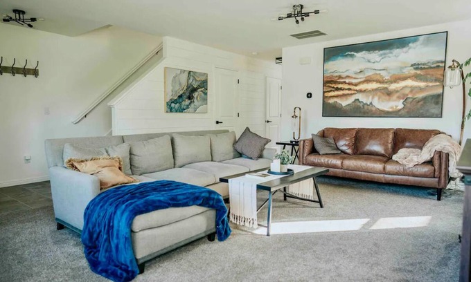 Welcome to our fully stocked, beautiful, and bright home in Farmington! Boasting a fully stocked kitchen, walkable neighborhood, stylish new furniture, 1 king bed, and 3 queen beds. Your pets will enjoy the fenced yard with a dog door. Only 5 minutes to Lagoon and even less to Station Park! Legacy Trail, Farmington Bay Waterfowl, and several ski resorts are only 10-45 minutes away. Utilize our full kitchen, washer/dryer, and BBQ area. Ready to provide comfort, convenience, and adventure. Can't wait to host you!