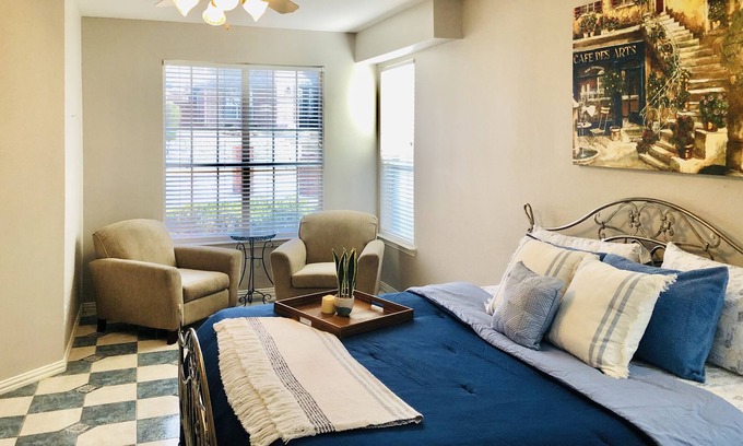 Includes 2 MASTERBEDROOMS! Bring the whole family or have a couples retreat at our lake house. You will be close to EVERYTHING and it’s a 5 minute walk to Lake Ray Hubbard where you will find fine dining, entertainment & boat tours. Our home offers 5BRs: 1) Master Luxury King Bed 2) Junior Master Full Bed. 3) Jack & Jill Trundle Bed 4) Entertainment Room Convertible Couch 5) Paris Room Queen Bed. Stocked kitchen with a butcher’s island. Open floor plan living room. Upper Deck with incredible view of Lake & sunset. Cozy backyard. ENJOY!
