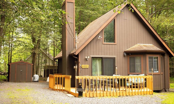 Four seasons of adventure in this dog-friendly cozy chalet approximately a 5-minute walk to Beach 4 on North Arrowhead Lake. In a gated community offering tennis courts, 3 pools, billiard room, and fitness center, there are plenty of activities for everyone. The Lucky Arrow backs up to state game lands, has an outdoor fire pit and hammock, and is located in a quiet cul-de-sac. This is the peaceful getaway you need!