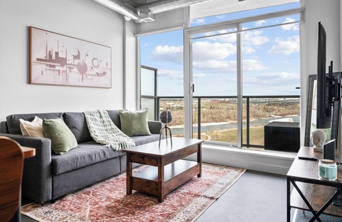 5 min Walk to Saddledome | King Bed | Sofa Bed | AC | Beside Fort Calgary | Apartment in Calgary