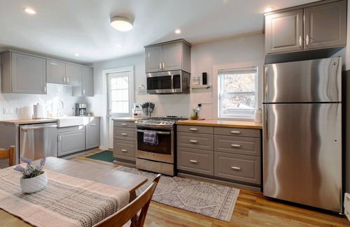 This newly renovated, pet-friendly, country-modern mountain cabin boasts a full array of amenities: