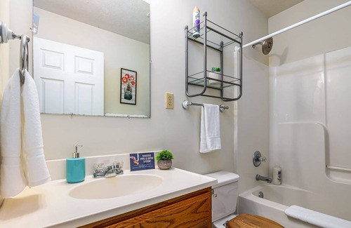 The first bedroom has a full bed with a two chairs for additional seating. The second bedroom has a king bed. In the third bedroom, you'll find a queen bed and oversized chair which is perfect to curl up and read a book! The last bedroom features two queen beds. There are two shared full bathrooms .