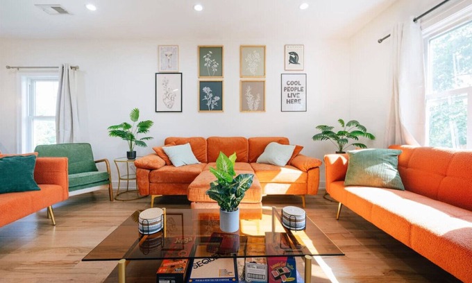 Accommodating up to 8-10 guests comfortably, the apartment features a variety of bedding options including three queen beds, 2 sofa beds, and a queen air mattress. Additionally, guests enjoy the convenience of free street parking, and the proximity to public transportation, making exploring the city effortless.