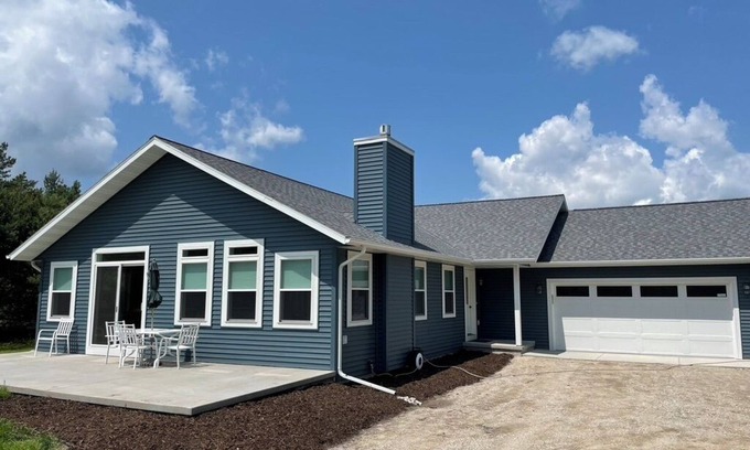 The house sits in a lovely meadow on a 1.5 acre lot surrounded by trees. Very private, but only a five minute walk to restaurants and a public sand beach. It borders a public park with disc golf. There is a small grocery store and a kayak company nearby. The house is new and has all of the amenities you expect. It is close to Cave Point and Whitefish Dunes, and less than a 15 minutes from Egg Harbor, Bailey's Harbor, and Fish Creek.