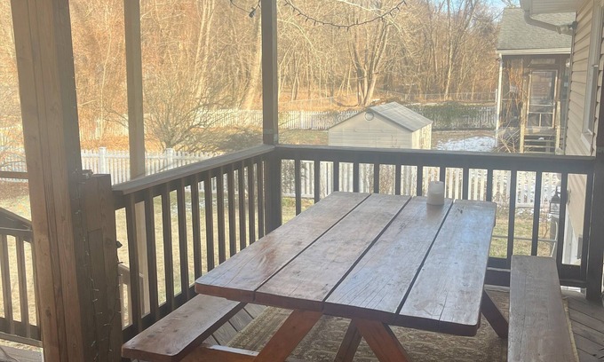 Enjoy a cozy stay at this charming home in Stockton. With a spacious backyard and screened in porch adjacent to the canal path, guests can relax outdoors or bike to neighboring towns like Lambertville or New Hope for a fun day on the town. Another perk is a short drive ten minutes up to Bull's Island for a river excursion. From this home, you can walk into the town of Stockton for a fancy night out at the Stockton Inn, grab breakfast at the Stockton Market or see live music at the Starving Artist Cafe. This home is the perfect combination of a relaxing getaway with the luxuries of short ventures into town.