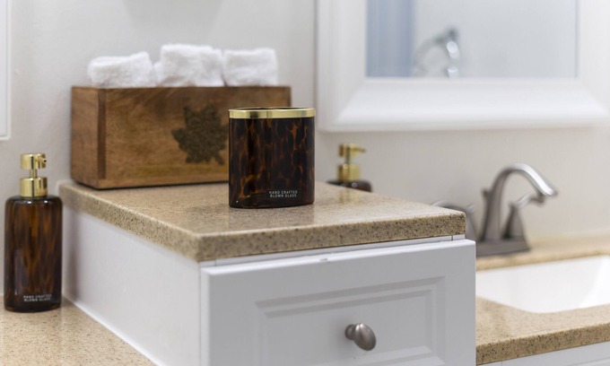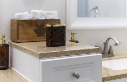 For maximum comfort and convenience of our guests, the full bathroom, stocked with all essential toiletries, can be accessed from the hallway.