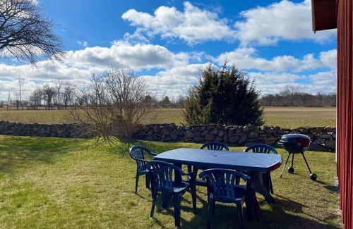 Summer house located in Bläsinge/Löttorp on the eastern coast of Norra Öland with a magical view of the Öland landscape and fields. Here you have the chance to enjoy the rural tranquility of Öland and still have the proximity to the sea with a variety of wonderful undulating, white sandy beaches. The nearest bathing beach Högby lighthouse is 3 km away. You also have Sandvik, which is a fantastically beautiful beach. Popular Böda Sand is only 13km away. In Byxelkrok you can enjoy strolling down by the boathouses in the harbor or enjoy a good meal at one of the many restaurants. You only have 8 km to the popular restaurant Lammet och Grisen. The Öland trail runs outside the house for those who want to discover Öland by bike. You also have beautiful walking paths down to the sea. The house has a large garden with outdoor furniture and a barbecue. In the living room there is dining furniture and a sitting area with a sofa that can be used as a sofa bed if needed. There are two bedrooms, one with a double bed, the other with two single beds. The house is on the same plot as another house, but when you rent the house, the house owners are not there, which means that you have the garden yourself. No camping allowed on the grounds, no charging electric cars and pets are not welcome.