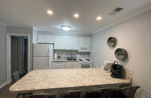 Sink in to pillow-top mattresses, cozy couches and wash the day away in renovated bathrooms. New LVP floors and tile throughout make for easy clean-up - don't worry about the sand between your toes here. Step outside your door to the beautiful resort pool, or relax, grill and chill on your private patio. Our condo has a new, dedicated wi-fi service, so you won't be competing for connectivity, speed or signal strength with other guests in the Mai Kai community. Enjoy wi-fi enabled TVs and thermostat, and a fully-equipped kitchen if you feel like a quiet night in. This is one of the few Mai Kai condos with an open-concept kitchen/living area with a large island (seating for six!). Brand new, quiet dishwasher for 2024, Keurig and drip coffee makers, microwave, full sized refrigerator and range, all dish ware and cookware, a variety of glasses and mugs, plastic cups and plates - our beach house has more than you'll need to enjoy your stay. Bath towels and bed linens provided. A community laundry facility is available on the property a short distance from the condo.