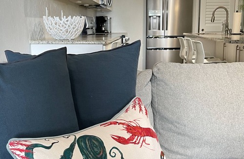 Schooner Point is a beautiful, quiet escape located right on the beach. The unit has 3 bedrooms, 2 bathrooms, and sleeps up to 6 people. There is 1 king size bed, 1 queen size bed, and 1 full size bed. It is located on the 1st floor with easy walk-out access to the pool, beach, and parking and features modern décor with granite countertops and all new (2024) stainless steel appliances. Recent updates include a sectional sofa, living area TV and rug, washer/dryer, air conditioning system, hot water heater, and interior doors. The large kitchen island comfortably seats up to 8 or creates a wonderful work/game/craft space. The condo complex is very well maintained and is located on the no-driving beach, on the south end of New Smyrna Beach. Parking at and access to this condo could not be any easier! There are 4 TVs - living room/master have cable - and a smart DVD player. The patio features a table with seating for six and two rocking chairs. There is a community pool which is heated in winter and community charcoal grills. No smoking or pets are allowed.