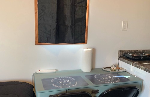 a/c, airfryer, stove top, dishes, mats, soft mattress, 4K SMART TV with 3D, new sheets, fridge, toilet!