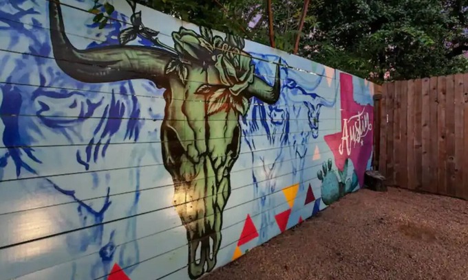 This modern 6BR / 5BA / 8Bed duplex on Austinβs hip East Side is outfitted with new hardwood floors and a newly remodeled kitchen and bathrooms. Thereβs plenty of room for everyone to unwind inside and out through the entire duplex, as well as the fun back yard mural to include in vacation photos.