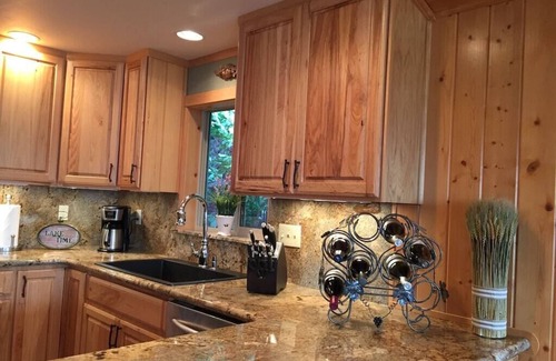 The family room offers a knotty pine cathedral ceiling with a cozy gas fireplace with a rock back setting. The gourmet kitchen features a 6 foot bar with seating, which makes the perfect setting for entertaining, cooking, dining or just relaxing. The dining area has a large dining table and is surrounded by large windows framing unforgettable lake and mountain views. All the furnishing are newly updated and tastefully coordinated.