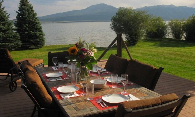 Taking it outside! You will love the large back deck as the perfect al fresco dining setting with Henry's Lake in the background. Adding to your outdoor ambience experience is a beautiful flagstone walkway leading to a massive gas fire pit built from natural stone for your pleasure and enjoyment. The ideal setting to sit back and relax to take in the sunset, enjoy a glass of wine, make S'Mores, as you bask in the spectacular views of the lake and the surrounding mountains of the Continental Divide.