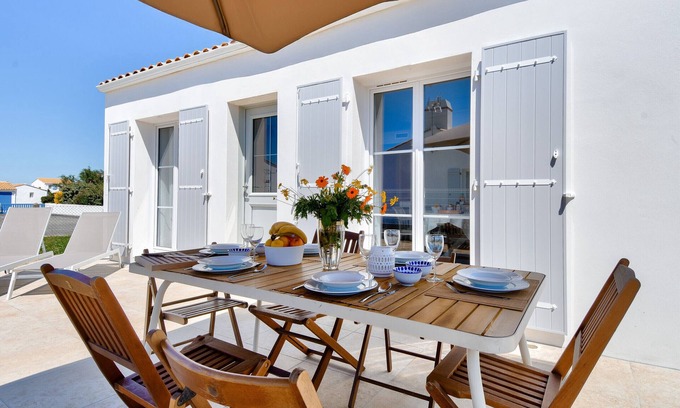 500 m from the beach - garden - house for 6 is located in Barbatre. 500 m from the beach - garden - house for 6 provides accommodation, featuring Laundry, TV, Balcony/Terrace, among other amenities. This Ski Chalet features Laundry, TV, Balcony/Terrace, to make your stay a comfortable one.