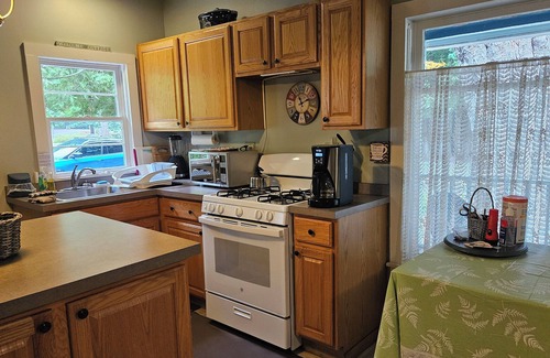 If you prefer to stay home some day or evening, prepare your dinner in the fully equipped kitchen or on the grill (charcoal provided). Then enjoy it in the dining room or as a picnic on the porch, in the backyard or in the nearby park, or up on Coy Mountain.