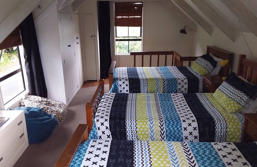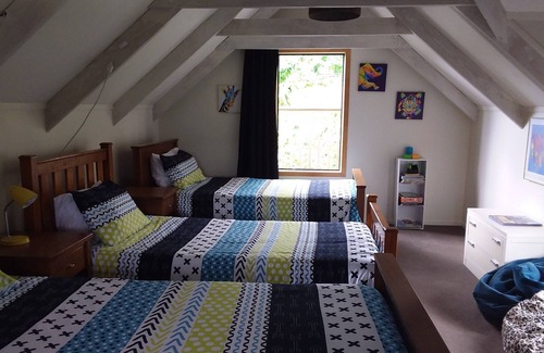 Queen bed downstairs and 3 king singles up in a loft style room makes it ideal for that family getaway.