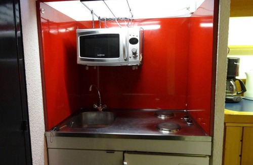 The residence Les Arolles, with lift, is situated at the Sun Square, at 50 m from the ski slopes, at the foot of the shops, tourism office and the ski passes desk and at 300 m from the ski school. There are restaurants at the foot of the slopes. There is also a funicular and shuttle busses that will take you to Arc 1800 and 2000, they are situatated at only 5 min walk from the residence (departure every 20 mn in winter). Surface area : about 33 m². 6th floor. Orientation : South. Living room with pull-out sofa (80*190), 2 bunk beds (80*190). Kitchenette with microwave, 2 electric cooking rings, fridge. Bathroom with bath-tub. Separated WC. Balcony. The beds in elevation are not suitable for children under 6 years.