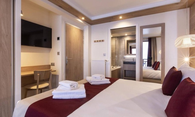 The residence Les Balcons Platinium Val Cenis***** promises a restful and relaxing stay in the mountains, in the heart of the Vanoise National Parc. The residence is ideally located in the heart of the village of Lanslevillard and nearby ski area and shops. This upscale and elegant residence blends in perfectly with its surroundings: stone cladding, larch cladding and plaster typical of Haute Maurienne. The 25 very spacious apartments can accommodate from 2 to 16 people and offer luxury equipment for an even more pleasant stay. Benefit from free access to the relaxation area with swimming pool, sauna, hammam, fitness area, paddling pool, jacuzzi. Surface area : about 93 m². Living room with bed-settee, stove. Bedroom with bath-tub, shower, double bed, WC. Bedroom with bath-tub, shower, 2 twin beds, WC. Bedroom with shower, 2 twin beds. Kitchenette with special heater to prepare La Fondue, special heater to prepare La Raclette, kettle, 2 coffee machines (filtre et Nespresso Magimix), Wine cellar, multi-function oven, toaster, dishwasher, microwave, induction cooking rings, fridge-freezer. Shower room with Italian style shower. Separated WC. Balcony.