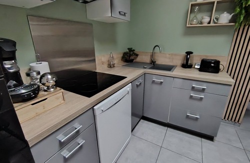 the apartment adjoining my house, is full feet, secured by personal alarm connected to a monitoring center (Your remote control to secure your rental) / private terrace for 4 people (a square table and 4 chairs) / small table indoors for 2/4 persons / shower steam room with radio / air conditioning in the room and living room (and it is you manage the temperature with remote controls / TV in the room and living room / possibility to request the cot for baby .