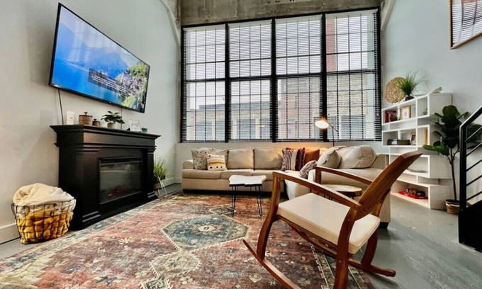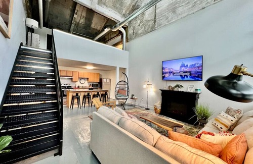 This is a loft and has an industrial feel. There are many things to do nearby. Great place for a stay-vacation.
