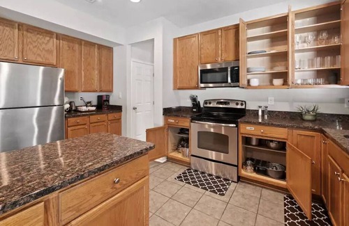 ●Modern kitchen with all New appliances( Pots, pans, plates, coffee and tea area and silverware furnished)