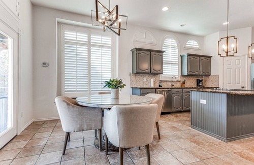 Welcome to our luxurious 4000 sqft home where you can spread out comfortably in the perfect getaway for your friends and family! Enjoy our custom movie theater with popcorn machine and high-end seating for your entire group. You will love our heated saltwater pool and outdoor dining under the covered patio. We feature separate kitchen/living/dining areas, memory foam mattresses and large smart TVs throughout the house. You won't want to leave!