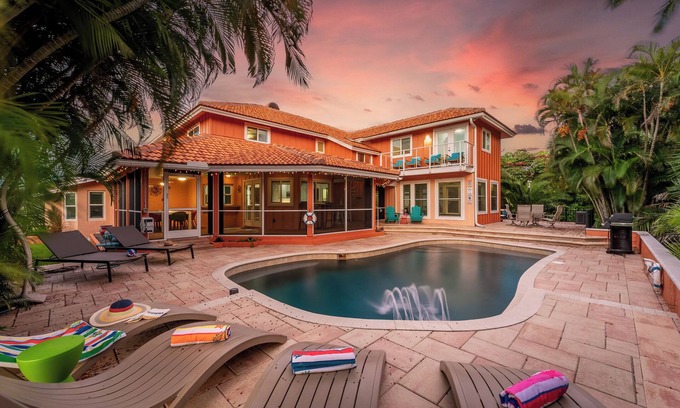 Discover a sanctuary where modern luxury seamlessly intertwines with timeless Mediterranean elegance. This high-end manor has been meticulously designed and furnished, with no expense spared, to ensure an unparalleled vacation experience. Nestled on a tranquil half-acre lot in the highly sought-after Carlton Estates neighborhood of Largo, Florida, Ocean Pearl offers partial Intracoastal water views from multiple vantage points. Its prime location places you just minutes away from the pristine shores of Indian Rocks Beach, Belleair Beach, and Clearwater Beach, allowing you to indulge in the best of coastal vacation experiences.