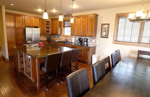 From early morning until late afternoon our home is filled with sunshine. It is thoughtfully appointed with high-end finishes throughout, including slab granite counter tops, custom tile and stone and beautiful wood finishes. Decorated in soothing rich colors, it offers the perfect blend of mountain ambiance and elegance making it the ideal choice for families or groups looking to enjoy a peaceful summer or ski vacation in the mountains.