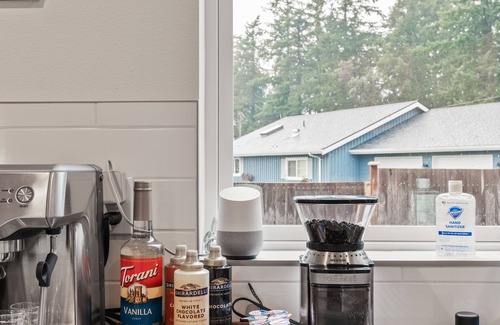 Escape to our modern, spacious home with stunning water views, perfectly located on Camano Island, a hidden gem within driving distance from Seattle and Puget Sound. NO ferry is needed. The island has a unique positive vibe and most amazing sunsets. It has beautiful beaches, 2 state parks, easy hikes an under-the-radar food scene, beer and wine tasting. This was built in Nov 2021 and boast views of Saratoga Pass from large kitchen, living room & bedroom windows