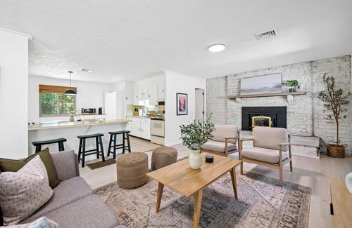 Soak your cares away in the private hot tub, where you can unwind under the stars after a day of exploration. Gather around the fire pit for s’mores, stories, and stargazing in the peaceful outdoor setting. Enjoy a beautifully appointed interior with comfortable furnishings, a fully equipped kitchen, and a warm, welcoming atmosphere. Take in the natural beauty of the surrounding landscape from the comfort of our home.
