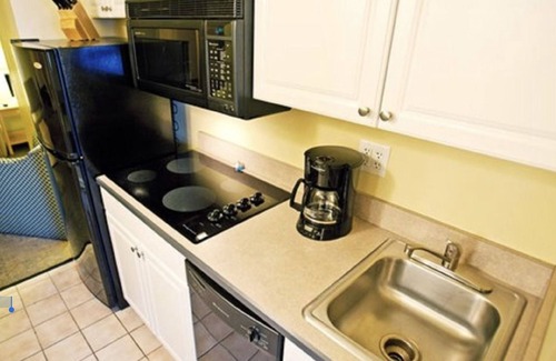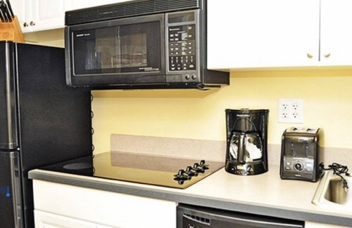 This is a nice 1 bedroom 1 bath timeshare unit with kitchen and everything you need. The resort is right across the street from the Oceanfront in VA Beach. The resort is ranked 22 out of 115 in VAB and has been totally redone. This unit sleeps up to 4 people and is conveniently located at 4th and Atlantic next to Rudy Inlet at the south end of the boardwalk. Great place to ride bikes or rollerblade. Unit has a full kitchen stocked with pots pans and dishes so no need to eat out. Kitchen has a small mini fridge type refrigerator that is not shown in photos. Refrigerator that is in unit will be half size and fits under the counter. Flat screens in every room, really comfortable beds, nice bathrooms, all redone a few years ago. Also directly across from Waterman's Seafood restaurant and the 4th street pavilion on the boardwalk where they have good live music. A few blocks from giant jungle gym structure at the south end of the boardwalk.