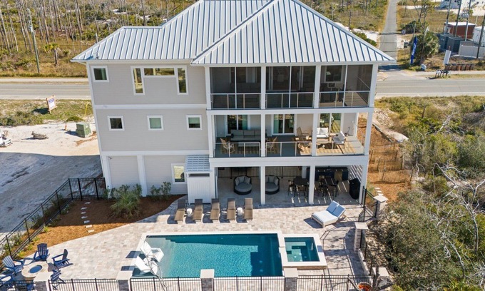 Best-rates for the Port St. Joe house starts from $1,265 per night with includes Air Conditioner, View, Ocean View, Security/Safety, Fireplace/Heating, Internet, TV, Wheelchair Accessible, Private Pool, Bedding/Linens, Wellness Facilities, Child Friendly, Parking, Pool, Oceanfront, Accessibility, Barbecue/Outdoor Cooking, Kitchen, Balcony/Terrace, Laundry StayAndPlay offers fully equipped golf villas, golf hotels, golf resorts, luxury golf cabins, and exclusive golf retreats, making it easier than ever to find your perfect golf escape — ideal for families, peaceful getaways, or pet-friendly retreats with the whole crew.