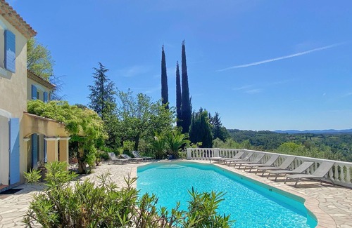 In the Provence-Alpes-Côte d'Azur region, near the village of Entrecasteaux, this beautiful, high vacation home welcomes you. Surrounded by pines and cypresses, the bright house makes a very charming impression from the outside. Inside you will find a tasteful interior and lovely, lovingly furnished rooms. Here find up to several families space for relaxing vacations and quiet nights.