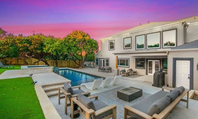 Best-rates for the Austin house starts from $1,032 per night with includes Hot Tub, Air Conditioner, Pet Friendly, Security/Safety, Wellness Facilities, Fireplace/Heating, Balcony/Terrace, Barbecue/Outdoor Cooking, Kitchen, Laundry, Parking, TV, Child Friendly, Pool, Private Pool, Internet StayAndPlay offers fully equipped golf villas, golf hotels, golf resorts, luxury golf cabins, and exclusive golf retreats, making it easier than ever to find your perfect golf escape — ideal for families, peaceful getaways, or pet-friendly retreats with the whole crew.