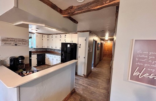 Great for traveling sports families, reunions and large groups! 10 miles from Amarillo, 15 miles from Canyon. Relax with the whole family at this peaceful hideaway tucked into the rim of the canyon on 10 acres. Featuring a 5 bedroom 3 bath home, along with a separate game room with a bedroom, bathroom, kitchenette, pool table and shuffleboard table. Enjoy incredible views, visits from wildlife, access to the small lake for fishing or kayaking and so much more at this one of a kind property. We do ask that guests respect and expect wildlife at this property. It is by the lake and in the country.***** There are stairs that you have to climb in order to get to the house. Unfortunately this property is not wheelchair accessible.