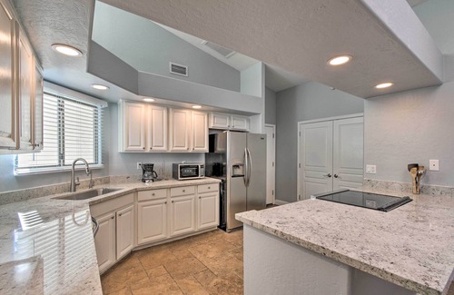 A quintessential Arizona oasis awaits at this Tempe vacation rental! This 3-bedroom, 2-bathroom condo makes a great place to recharge as you enjoy all the activities under the sun! Here, you can begin each day with coffee al fresco and then gear up to explore. Take a short drive to visit Arizona State University, play golf on world-class fairways, or see your favorite players at Spring Training. Be sure to balance out a dynamic stay with plenty of relaxation, as you lounge by the cozy fireplace!