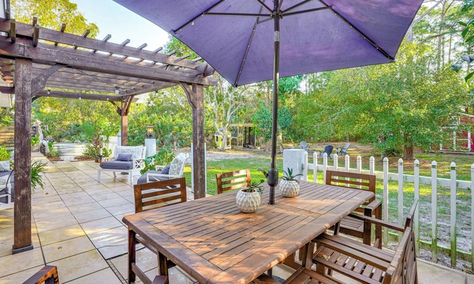 Book this Fort Pierce vacation rental and enjoy a relaxing escape on Florida's Treasure Coast! With its wooded surroundings and ample living space, this 3-bedroom, 2.5-bath home offers privacy and all the comforts of home. Looking to venture out? Lounge on the shores of South Causeway Beach, shop for local produce at Nelson Family Farms, or visit nearby museums. Afterward, gather around the fire pit.