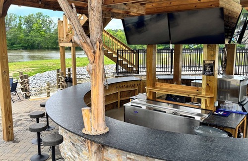 Relax with the whole family at this peaceful place to stay. Our 6 person cabin has 2 queen beds and a pullout sofa! One queen bed is in a loft which requires you to climb a ladder. It is recommended for young adults or kids. Enjoy the view on the porch overlooking the Coosa River! Bring the kids to swim in our SALT water pool and hot tub while the adults sit back and enjoy a cold drink from our swim up tiki bar! Not looking for an alcoholic beverage? Visit our onsite convenience store!