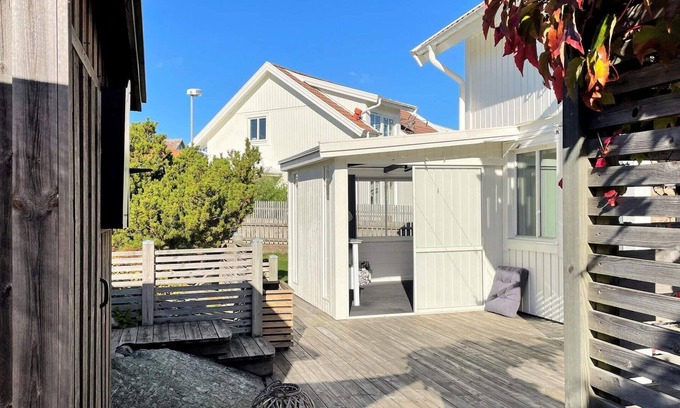 Welcome to Hönö in Gothenburg's northern archipelago and a quiet and child-friendly residential area close to most things. Just 500 meters from the house you can look at the fishing boats, visit the local restaurants, shop in the clothing and grocery store or enjoy a lovely dip from cliffs or sandy beach. The villa is located in a courtyard without cars with a large playground with both sandbox, swings and slide. Here you can keep track of the children from the conservatory. On the first floor there is a spacious hall with clothes hangers for outerwear and one of the bathrooms with toilet, sink and shower. Directly to the right is a complete kitchen with a bar area with two chairs. Separate dining table is provided in the living room which is directly adjacent. Via balcony door you come out to the house's glazed terrace with furniture. From here on to the terrace which has barbecue and cozy wicker furniture. Via the balcony door on this side you come back into the living room which has a large lovely sofa and TV as well as a wood burning stove. Upstairs there are three bedrooms, the first with a double bed 180cm and two children's rooms. The first room has a sofa bed 140cm and in the second bedroom there is a bunk bed 80/120cm. The house is optimally suited for 6 people and if you have a small one that fits together in the lower sloop of the bunk bed, it is possible to be 7 people. On the second floor there is also the second bathroom which has a bathtub, toilet and sink. The accommodation cannot be booked by youth groups under the age of 25. A guardian in the party must be present throughout the stay. In the immediate area there is a lot to discover both in the mountains outside or in the courtyard together with the other children in the area. There are swings, slides and toys in the sandbox. Feel free to bring bicycles or kickbikes to make it easier to get to the port or center. If you want to go on fishing adventures, there are chartered fishing trips in the harbor. You can also make day trips to some of the other islands nearby. All with free ferry communication or bridge connection. Some weeks during the summer you can take the archipelago boat "Kungsö" into central Gothenburg. More local information about Hönö can be found at Visit Öckerö. A holiday to long for. Welcome!