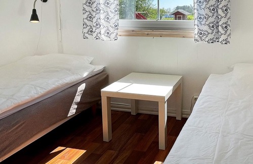 Layout: Kitchen(cooker(electric), coffee machine, oven, microwave, dishwasher, fridge), Living/bed room(TV(swedish TV channels)), bedroom(double bed), bedroom(double bed), bedroom(2x single bed), bathroom(washbasin, shower, toilet), garden furniture, parking, geothermal energy