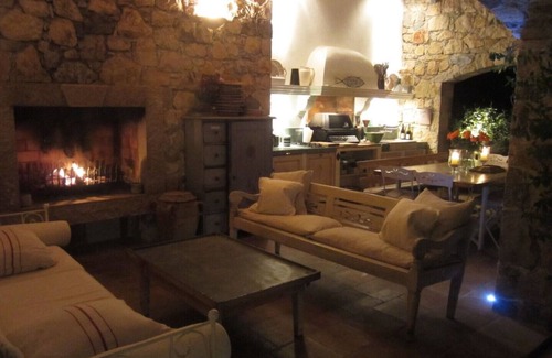 Beautiful old farmhouse on two acres of terraced olive groves with heated swimming pool. The main house has 4 double bedrooms and 3 bathrooms. The master bedroom has a large en suite bathroom, with an antique French roll top bath plus seperate shower. Excellent new kitchen with small breakfast table, La Canche range cooker with two ovens and five burners. There is an open plan sitting/dining room with French doors opening onto a wonderful, large summer kitchen. You can eat at an old marble table which can seat 12- we have a gas-fired BBQ, a second dish-washer and another fridge. A large seating area around the fire place is ideal for cool Spring and Autumn evenings. There are lovely extended gardens ideal for children’s games. We have built a good size boule court adjacent to the summer kitchen ( boules provided!).